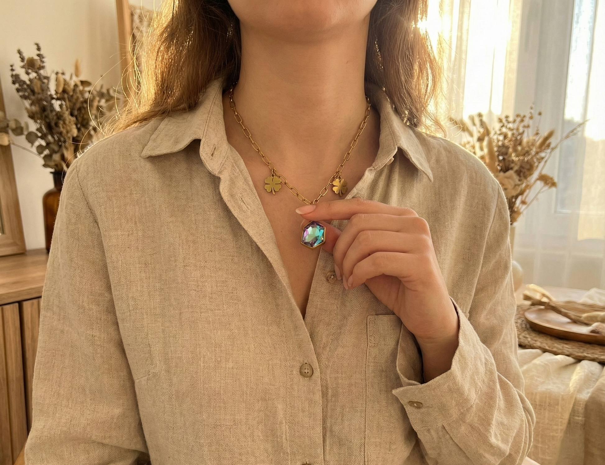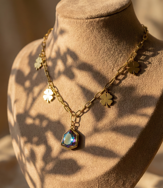 Şans, bekleyenlerin sığınağıdır; kader ise cesurların kendi elleriyle yazdığı bir destandır. Kaderin Parıltısı, boynunda taşıdığın bir aksesuar değil, evrenin sana sunduğu sonsuz olasılıkların kristalize olmuş halidir. Zincirindeki her bir altın yonca, bizzat senin yarattığın fırsatlara olan inancını simgeler.